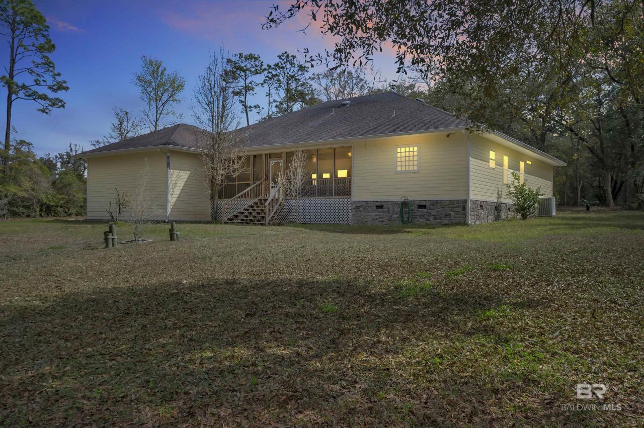 This spacious custom-built home is situated on approximately 6 acres that is not visible from the road. Located in the Magnolia Springs community. Just minutes to Magnolia River. The mostly wooded acreage offers exceptional privacy! The interior features crown molding, bull-nosed corners, fully encased windows, and high ceilings throughout. The floor plan includes a fourth bedroom that has a built-in bookcase, making it an ideal flex space. The home is equipped with two hot water heaters, gutters, a sprinkler system, and underground electrical. There is a long circular concrete driveway surrounded by beautiful oaks. The garage is oversized...read more