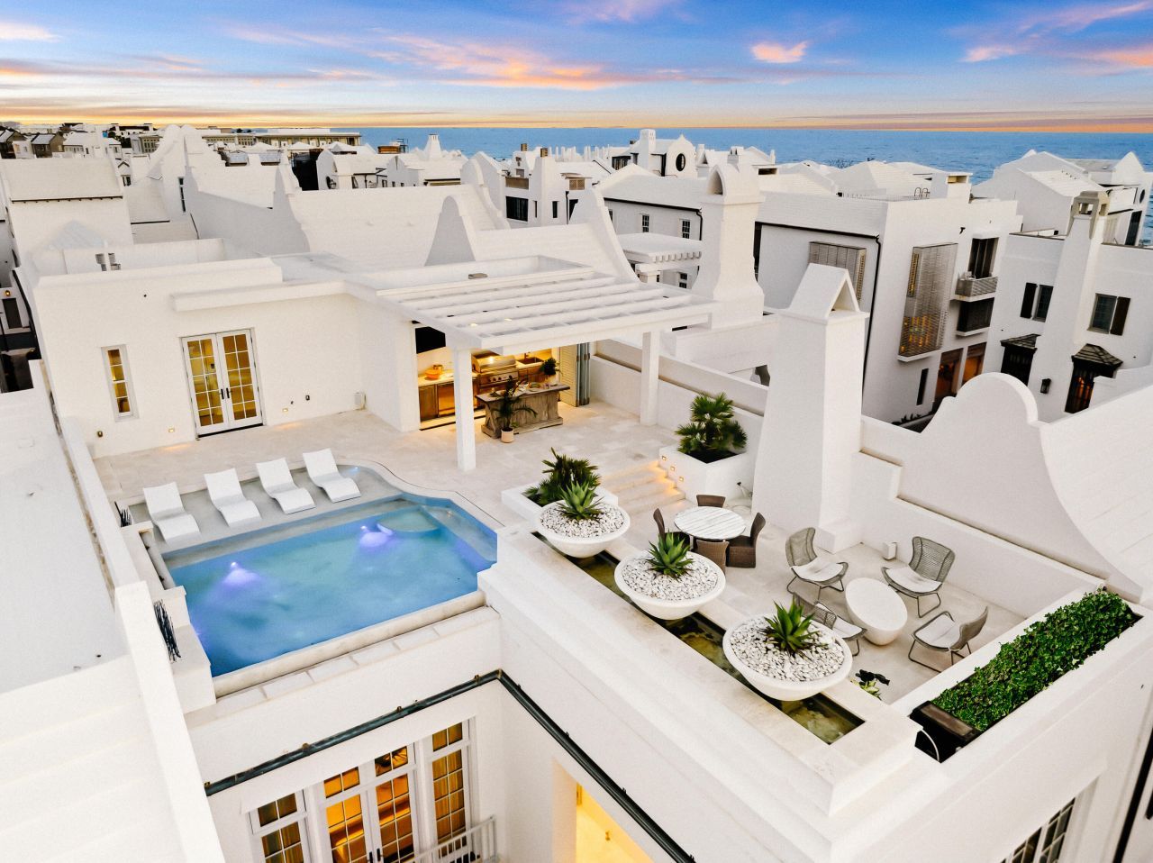Welcome to 13 La Garza Court ? a breathtaking architectural residence in the iconic community of Alys Beach. Thoughtfully designed for elevated coastal living, this three-bedroom, four-full and two-half bath home spans 4,844 square feet, blending modern sophistication with timeless Mediterranean influence.A dramatic private courtyard sets the stage, leading to a sweeping staircase and striking architectural details that establish an elegant tone. Light-filled interiors flow seamlessly throughout, from the stunning great room with its wood-paneled ceiling and designer fireplace to the open-concept dining area and chef's kitchen, appointed...read more