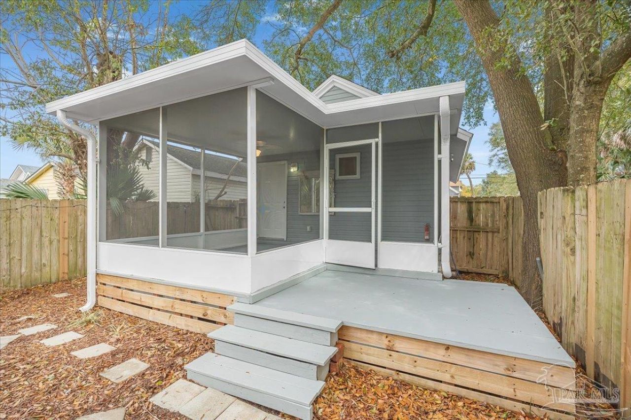 Charming cottage in a highly convenient central location-just minutes to Downtown Pensacola, shopping, dining, and a short drive to Pensacola Beach. Roof replaced in 2021 for added peace of mind. The backyard is designed for relaxing and entertaining, featuring a wonderful screened deck and cozy firepit area inside a fully fenced yard. Excellent rental potential with two full bedroom/bathroom suites, offering flexibility for guests, roommates, or investment income. Historic character shines through with beautiful exposed brick fireplaces visible from the living room and one of the bedrooms, adding warmth and timeless charm.