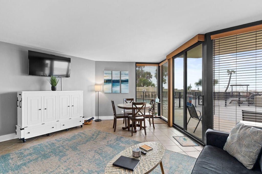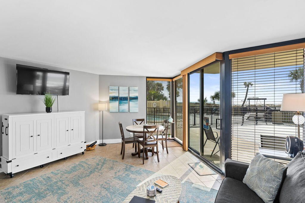 HIGHLY DESIRABLE GROUND FLOOR UNIT GULF FRONT AND RIGHT NEXT TO THE COMMUNITY POOL! Walk to the beach from your sliding glass door! No ELEVATOR WAITS! Your guests will not have to wait for elevators, look for carts of take time out of their vacation waiting! Upgraded unit has views of the beach and pool. Ground floor units rarely become available so GRAB THIS ONE FAST! Picnic area with grills and extra bathrooms righg outside your unit. Walk to Pineapple Willy's using SUNBIRD GATE. There is Waffle House, Walmart, Pizza and Seafood restaurants walking distance. Soon there will be TOOTSIES ORCHID LOUNGE just down the beach! Sunbird looks like...read more